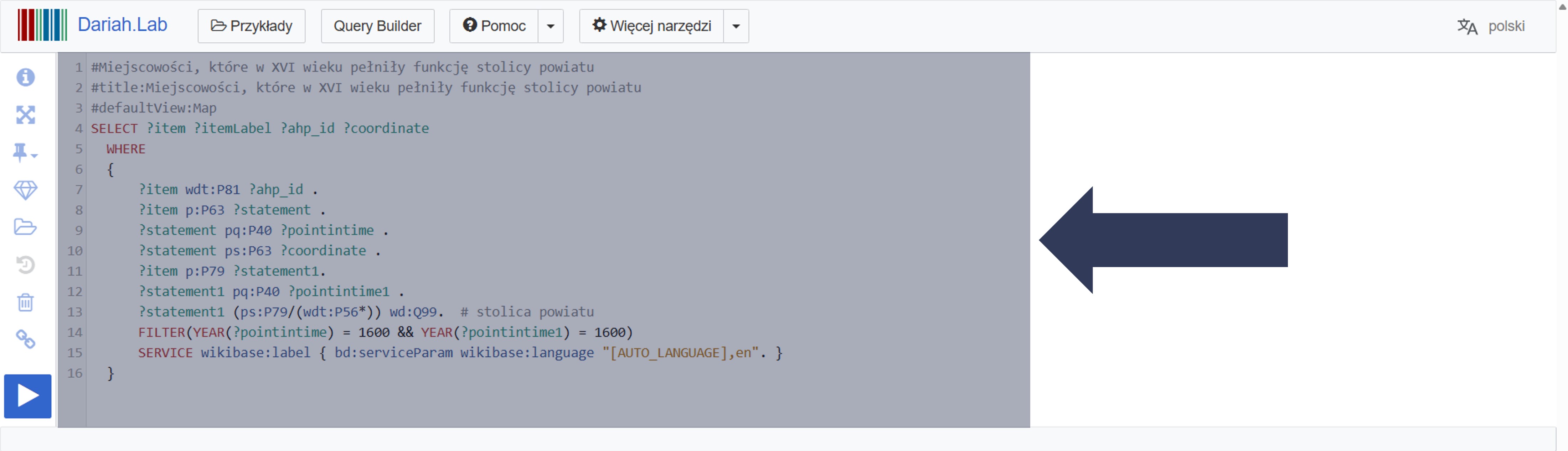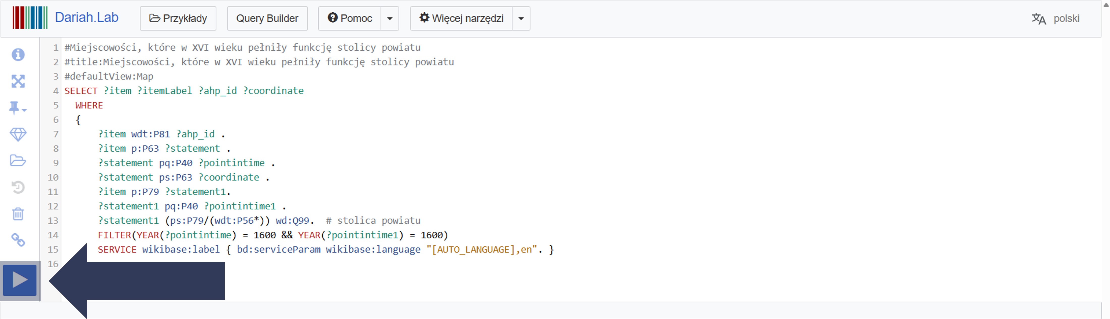 Aby wykonać zapytanie w narzędziu Wikidata Query Service: