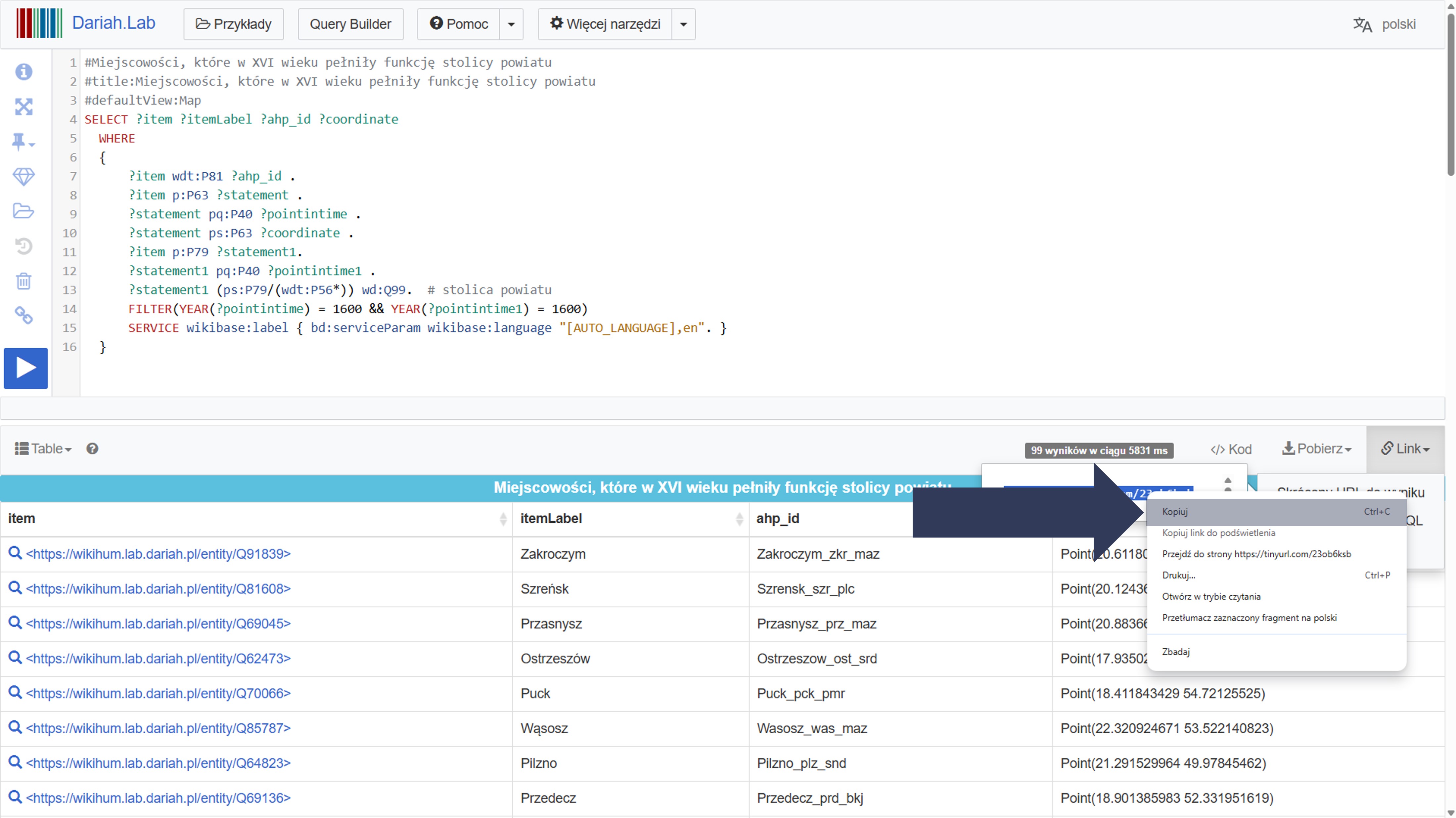 7.3.2 Pobieranie skróconego adresu URL do wyników zapytania