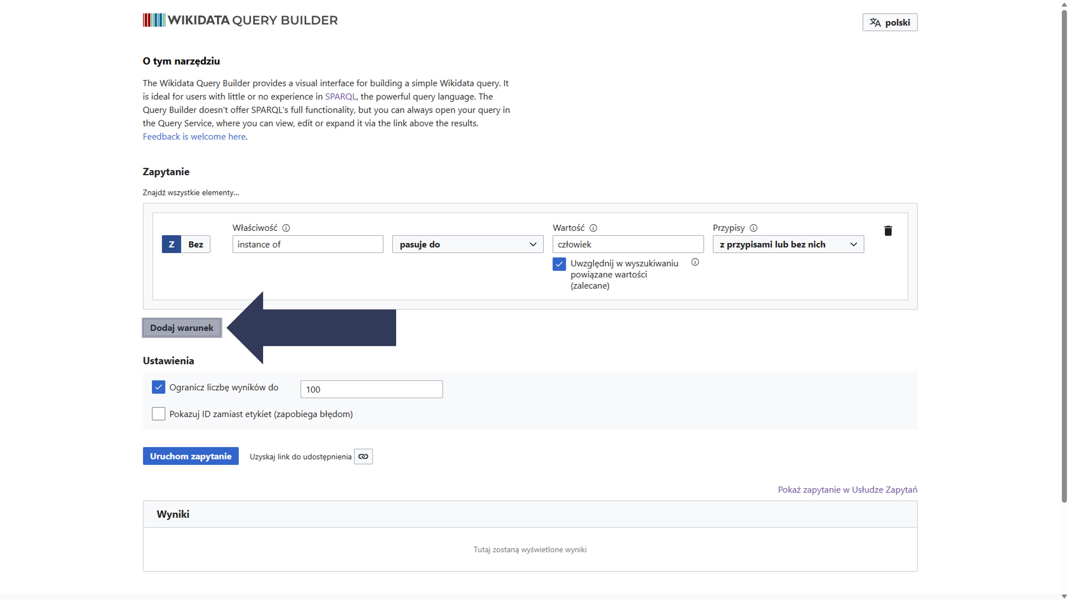 Aby zdefiniować warunek kwerendy (zapytania):