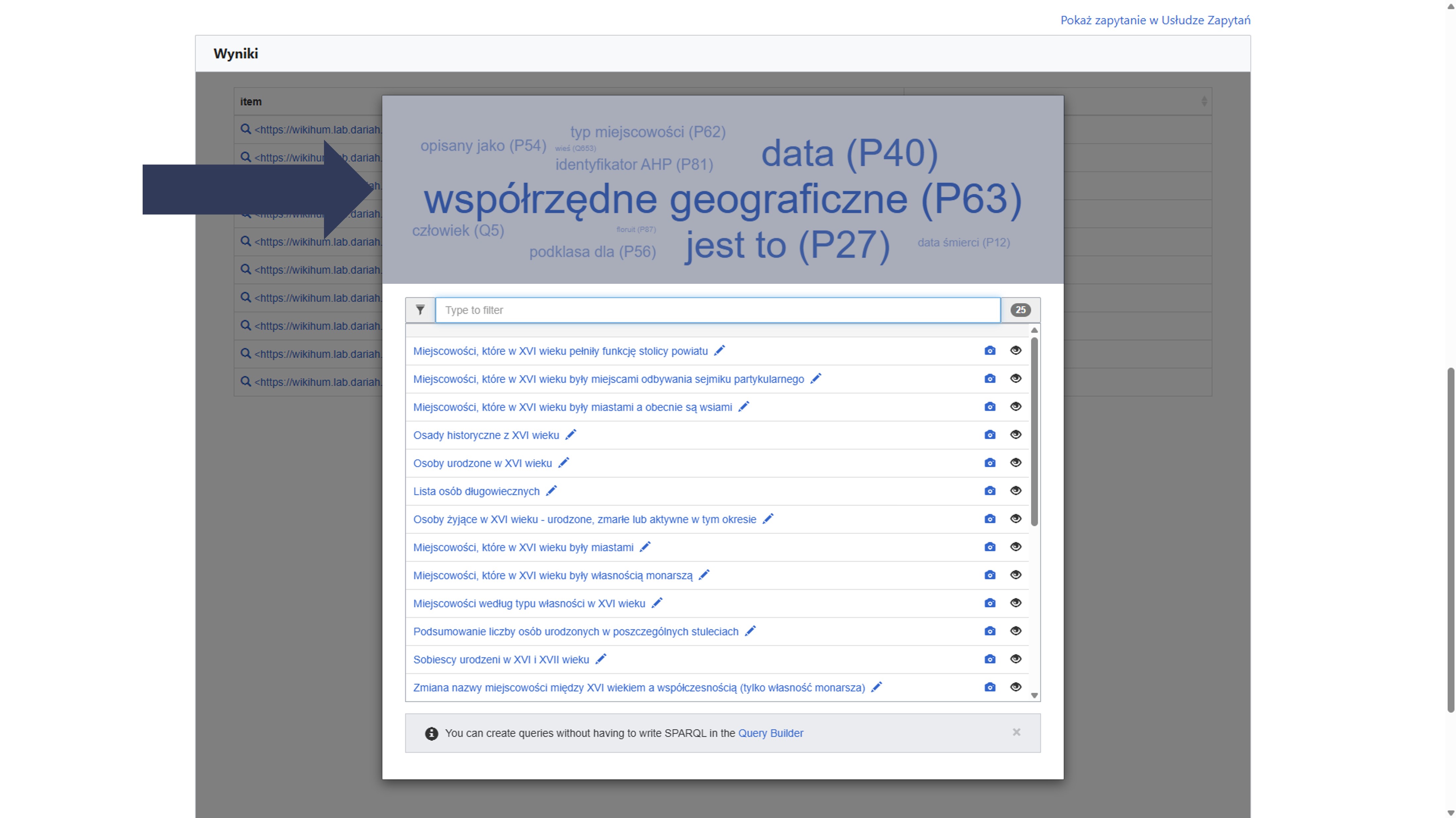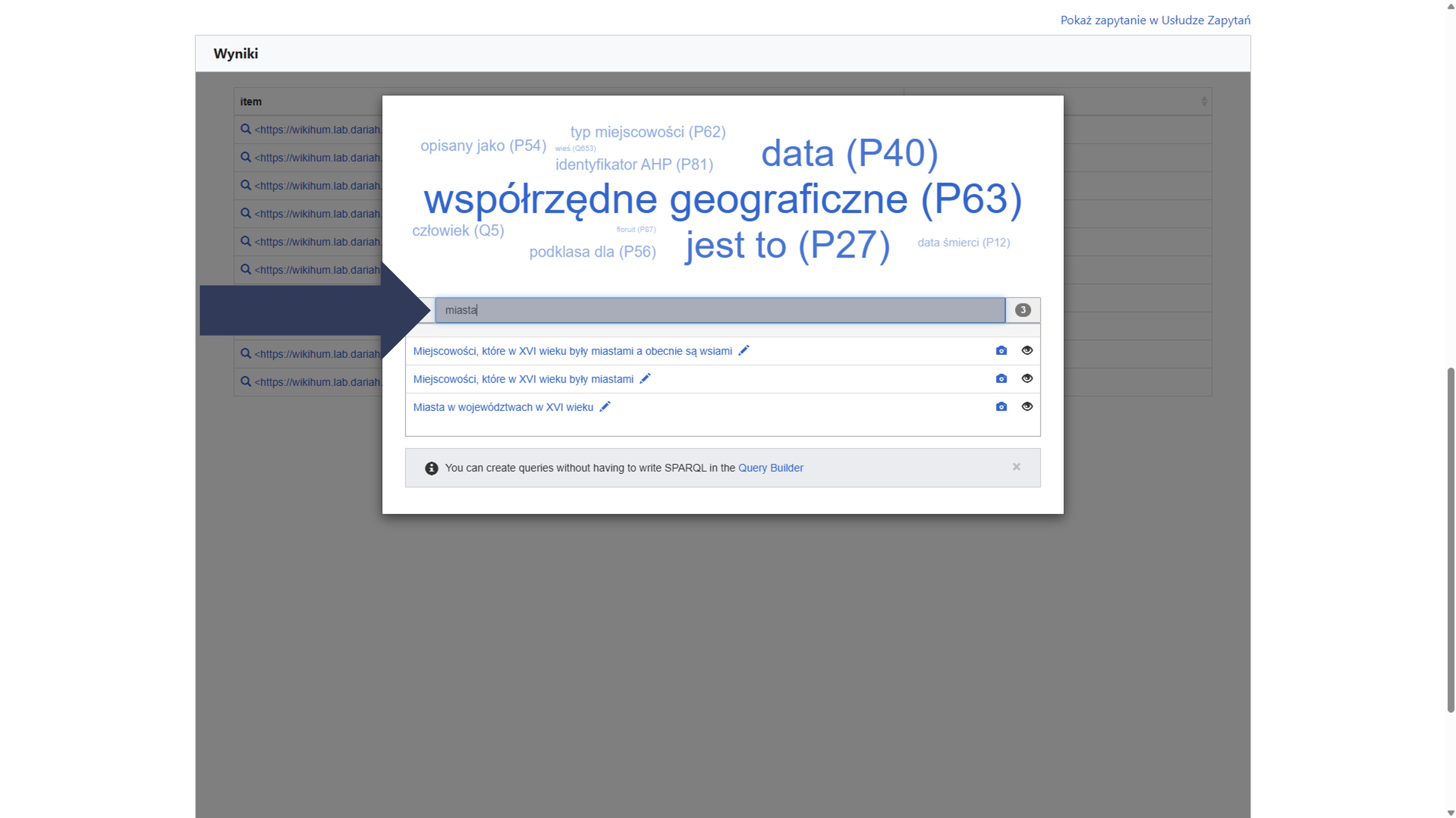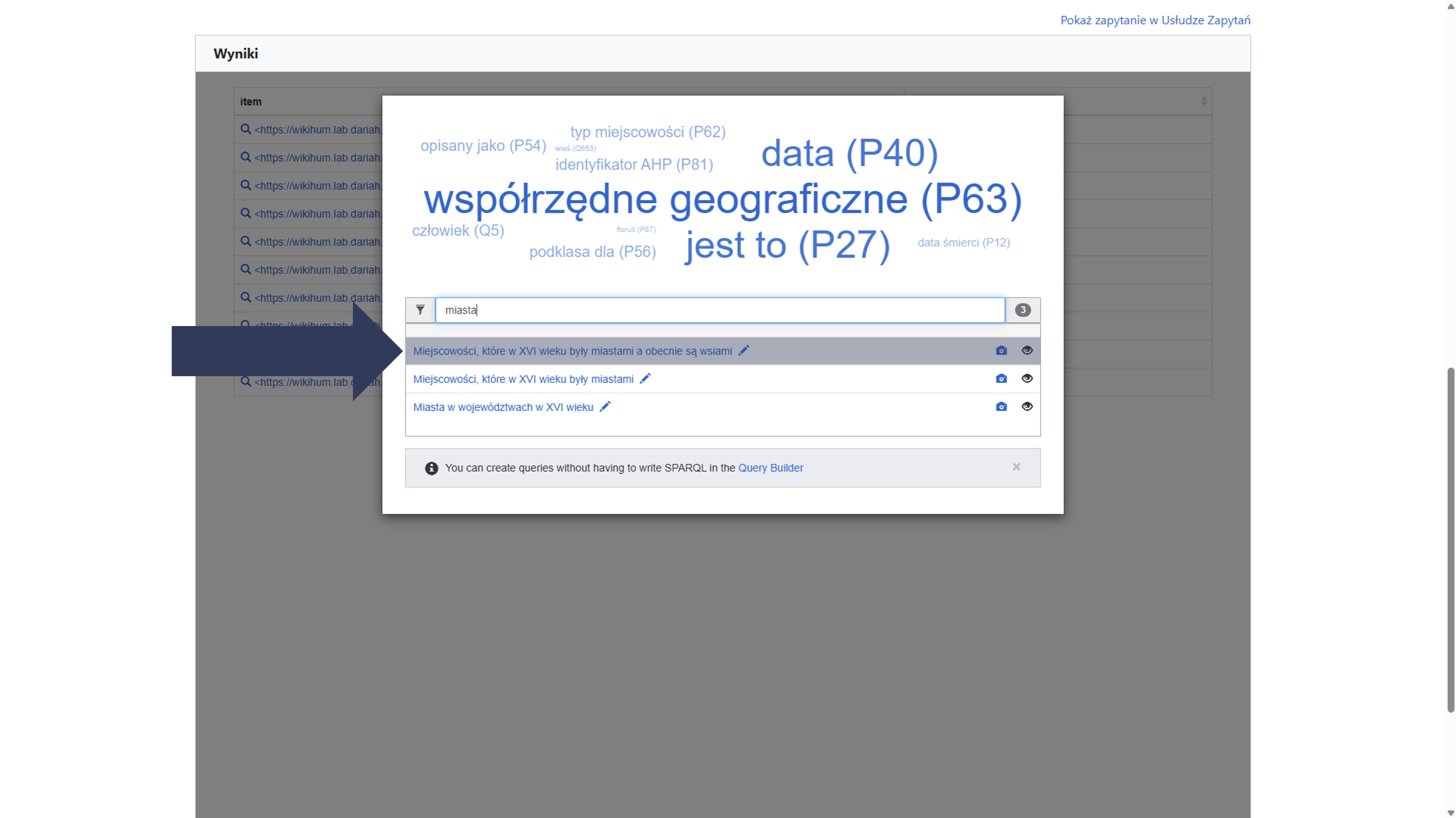 Aby wykonać przykładowe zapytanie w narzędziu WikiData Query Builder: