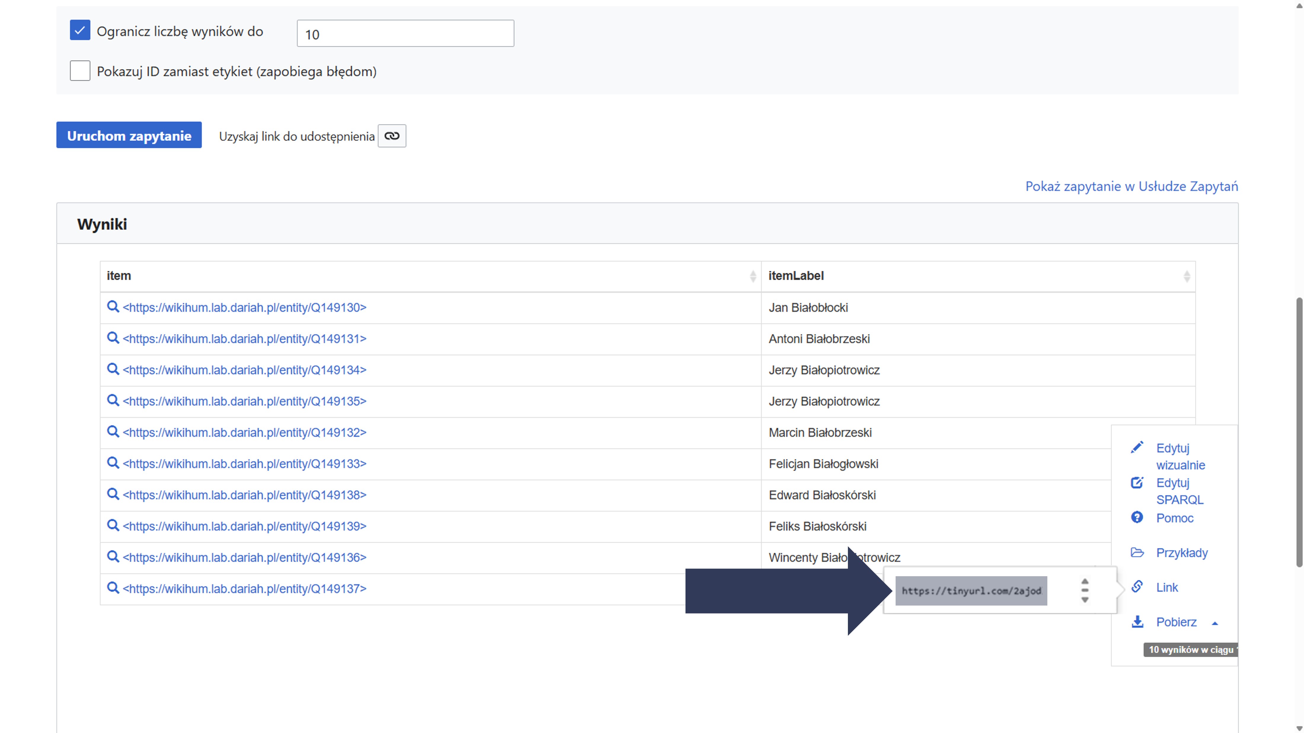 6.3.2 Pobieranie skróconego adresu URL do wyników zapytania