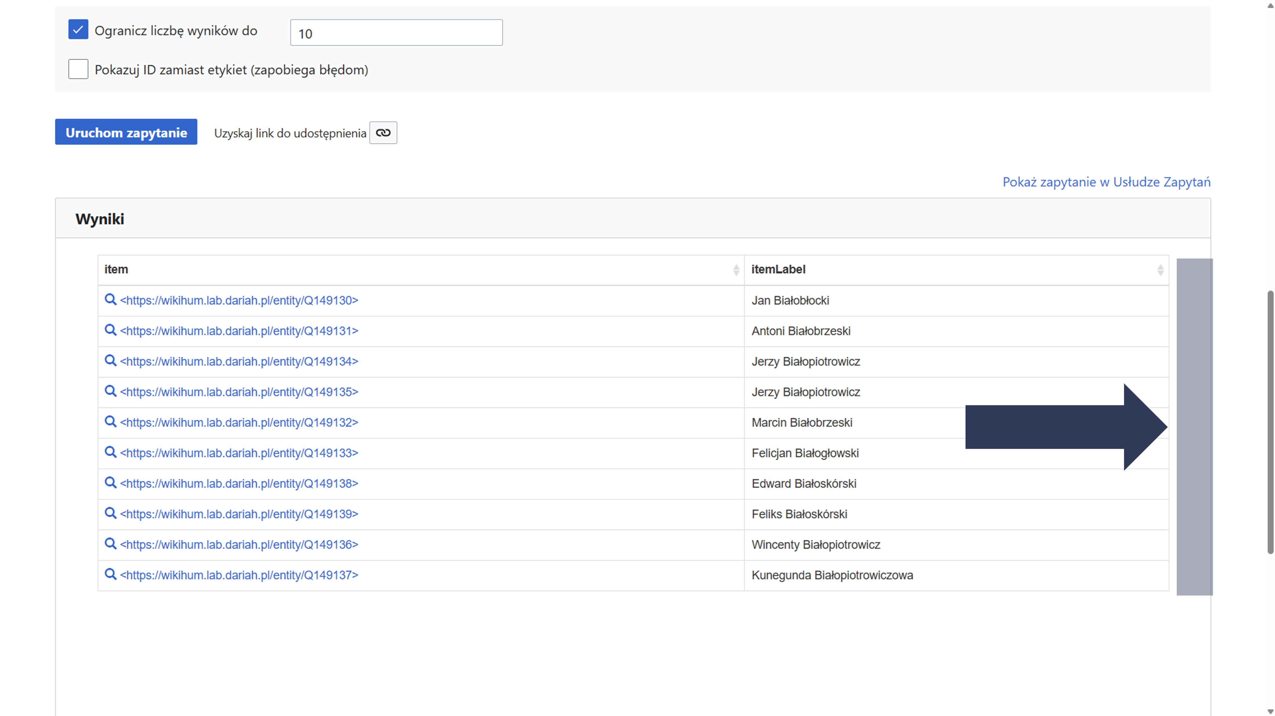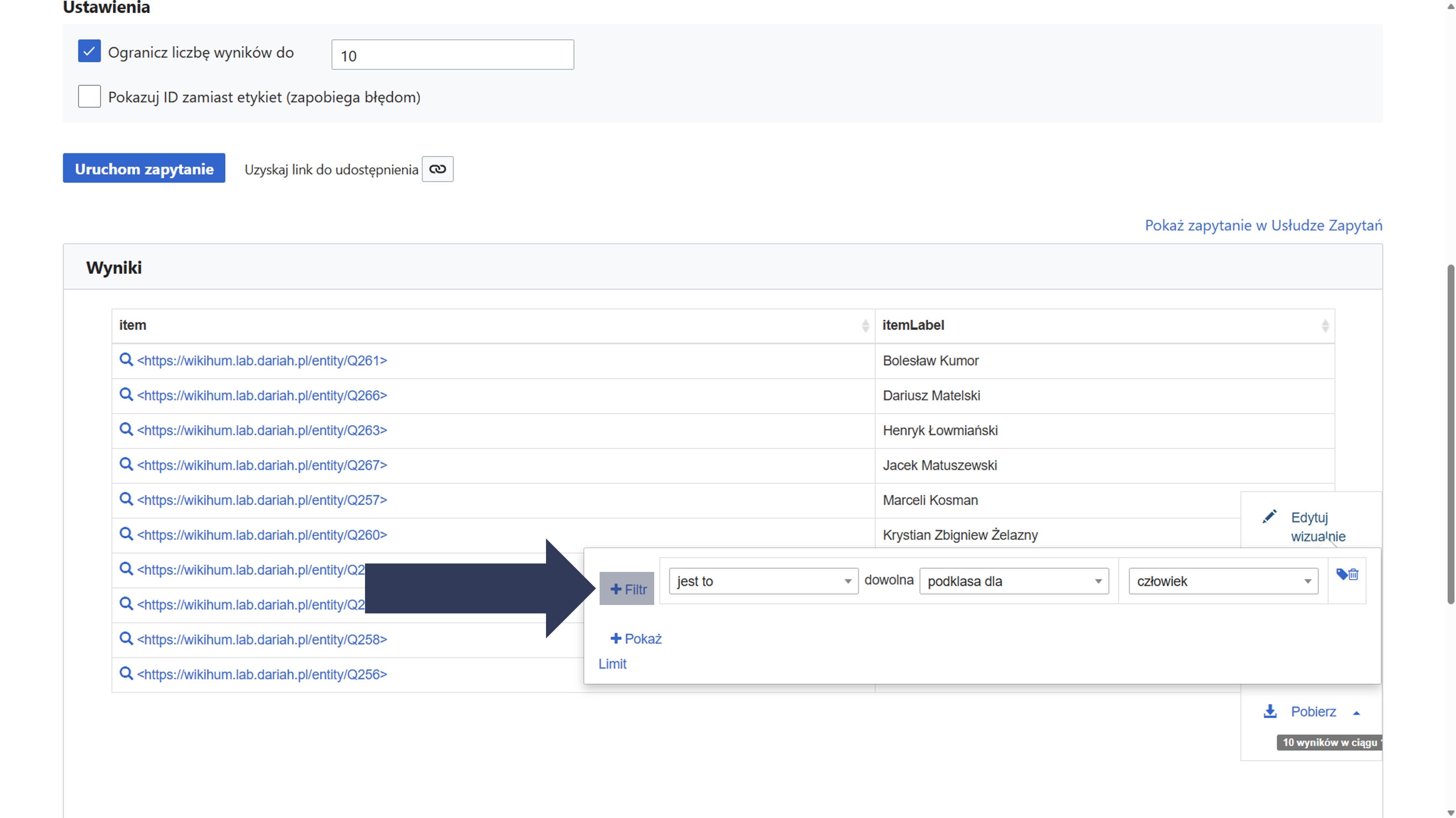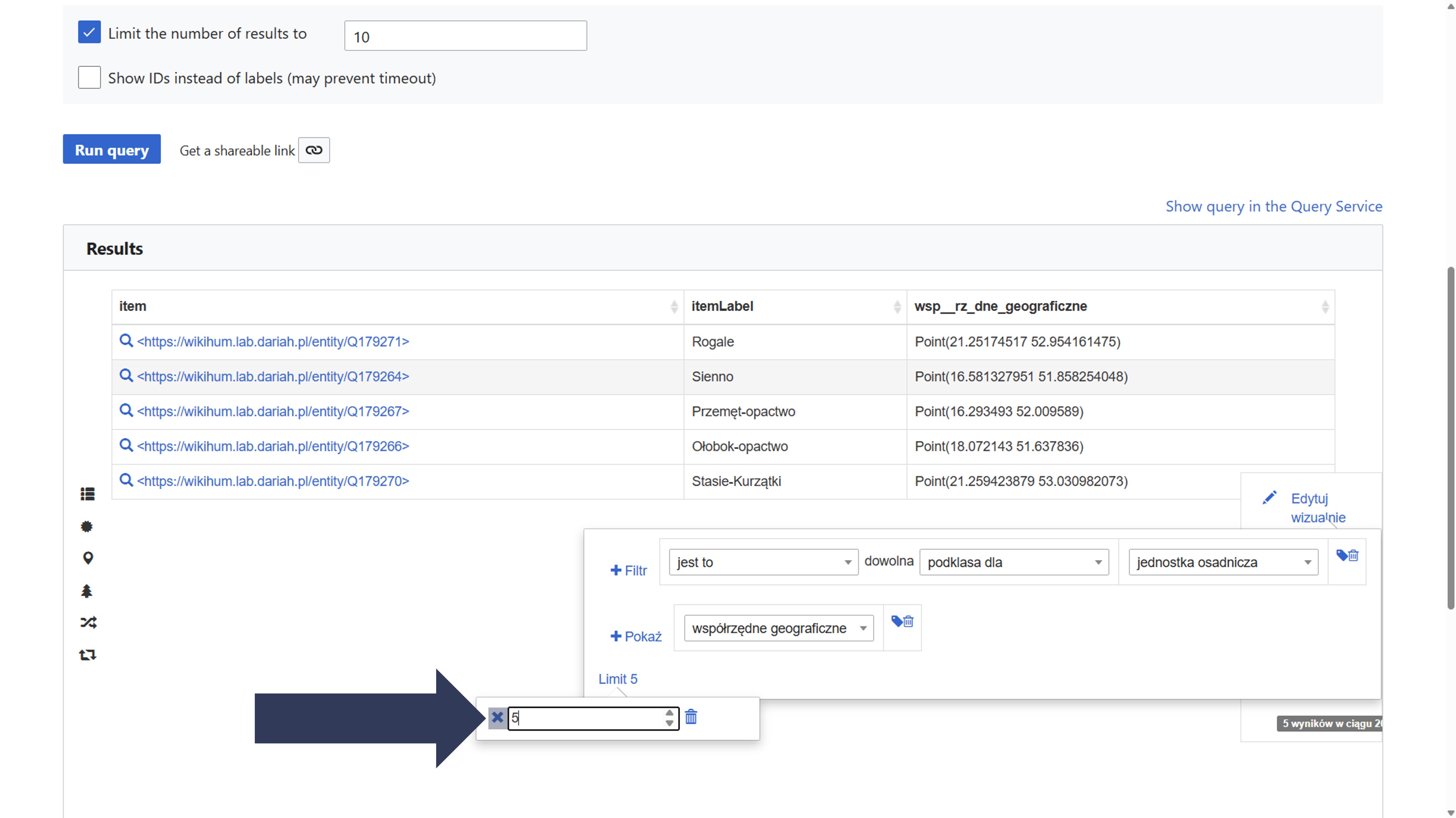 Wyniki kwerendy zostaną ograniczone do wskazanej liczby.
